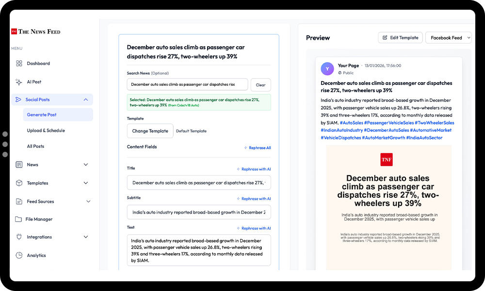 Stop wasting hours on manual posting. With just one click, instantly transform your story into optimized posts for every platform and break the news first.